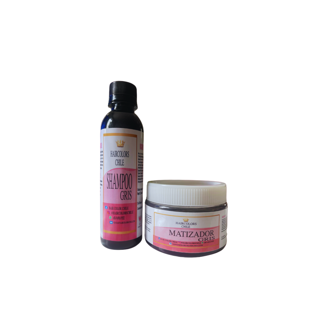 Nuestro shampoo gris 250ml y matizador gris 300ml prolonga el color por mucho más tiempo, cómo un baño de color en el salón.