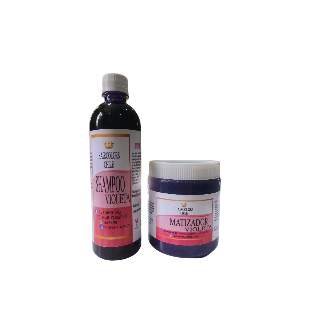 Nuestro shampoo violeta 500ml y matizador violeta 600ml prolonga el color por mucho más tiempo, cómo un baño de color en el salón.