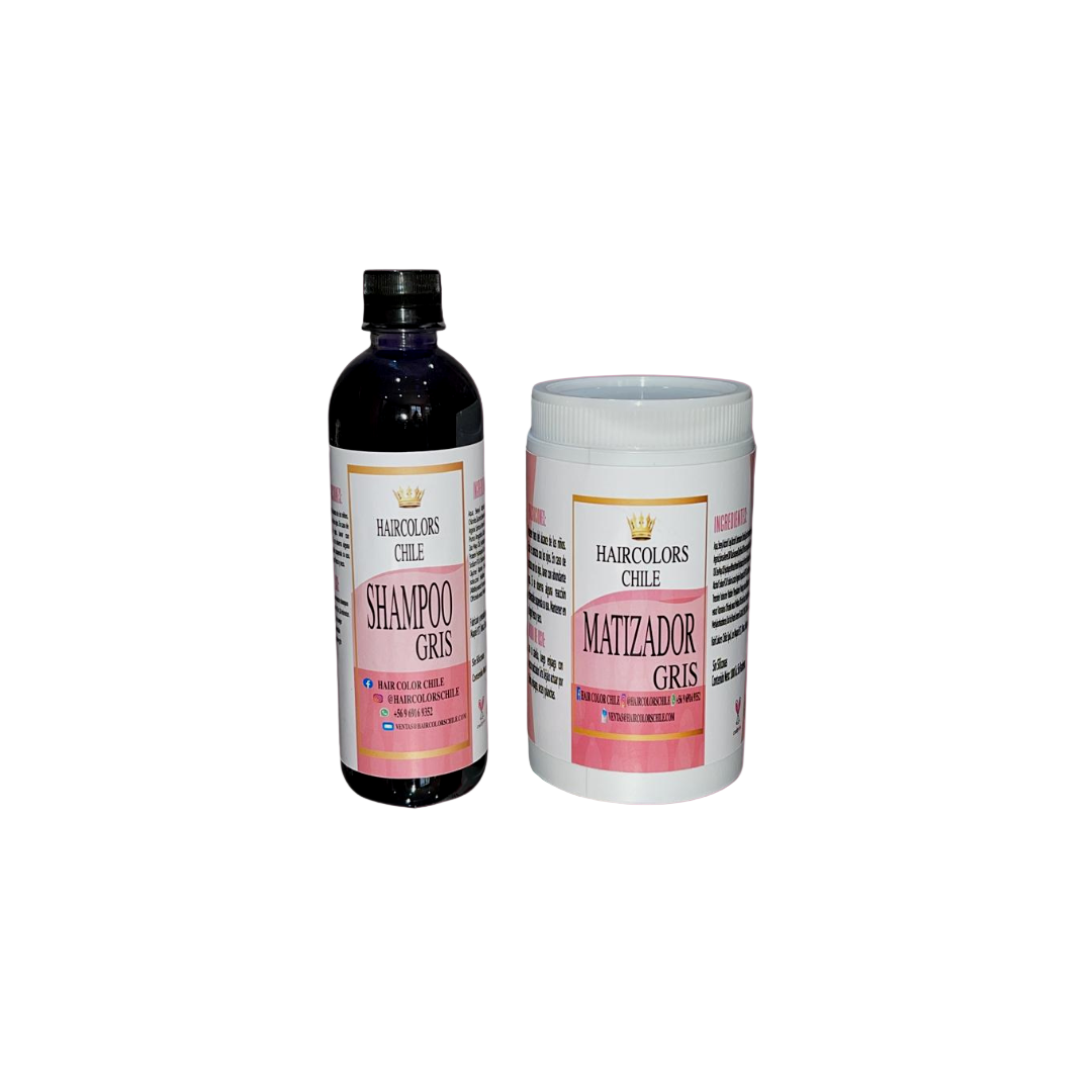 Nuestro shampoo gris 500ml y matizador gris 1000ml prolonga el color por mucho más tiempo, cómo un baño de color en el salón.
