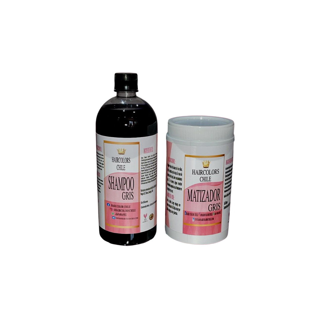 Nuestro shampoo gris 1000ml y matizador gris 1000ml prolonga el color por mucho más tiempo, cómo un baño de color en el salón.