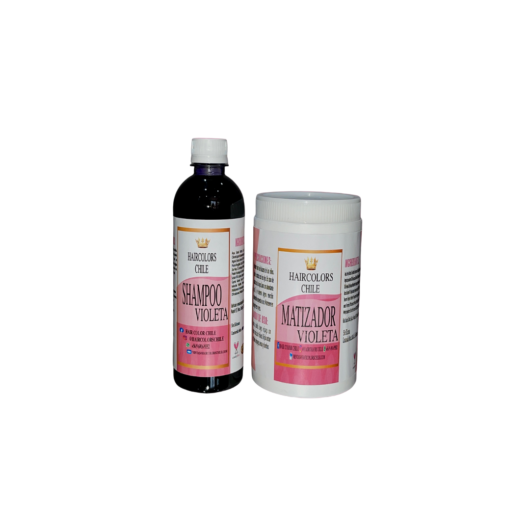 Nuestro shampoo violeta 500ml y matizador violeta 1000ml prolonga el color por mucho más tiempo, cómo un baño de color en el salón.